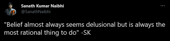 Again – “Belief almost always seems delusional but is always the most rational thing to do”